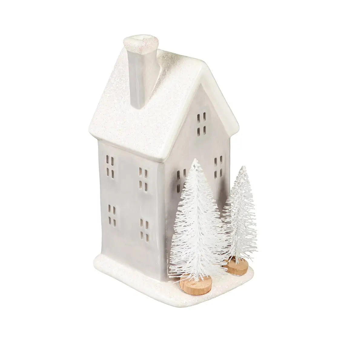 Add a touch winter wonder to any space with this delightful LED table décor. It features a beautiful design of a snow-covered house with two bottle brush trees sitting in the front yard. It lights up to create an extra festive finish. Whether adorning a mantel, shelf, or table, this piece is sure to become a cherished addition to any holiday décor. They require two LR44 batteries, which are not included.