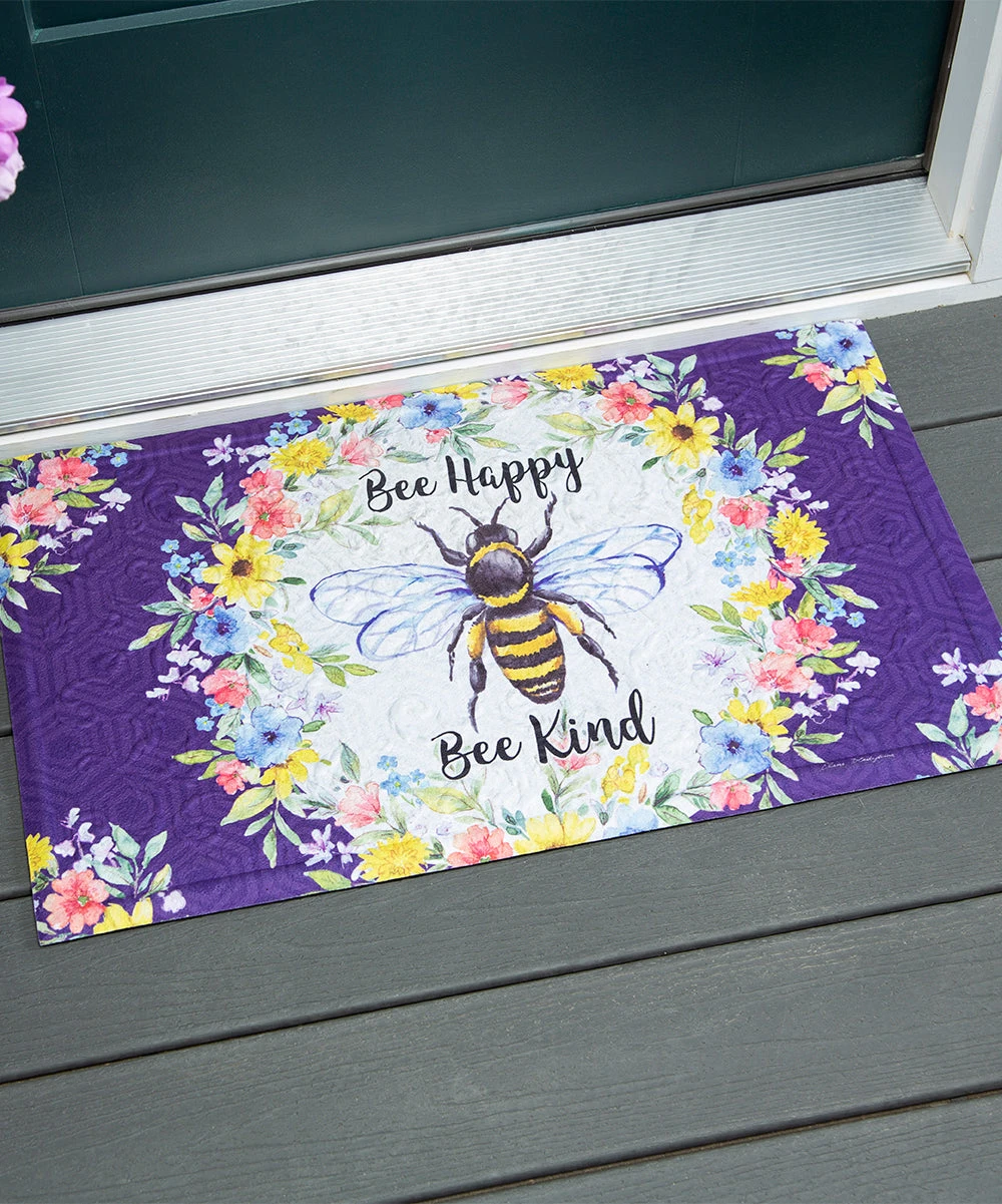 Inspire passersby with the “Bee Happy Bee Kind” sentiment on this charming Honeybee Garden Suede Flag. A buzzing bee is surrounded by colorful flowers atop a purple honeycomb pattern for a delightful design that is sure to warm hearts and spread smiles season after season. This Suede Reflections flag is made of medium-weight, polyester suede that provides a soft and durable texture. Artwork is heat transferred onto the sun-blocking material so that it is easily viewed from both sides. The weatherproof poly-suede will not fray or fade with continued outdoor use. This flag features a sleeve for use with any standard flagpole or stand, sold separately.