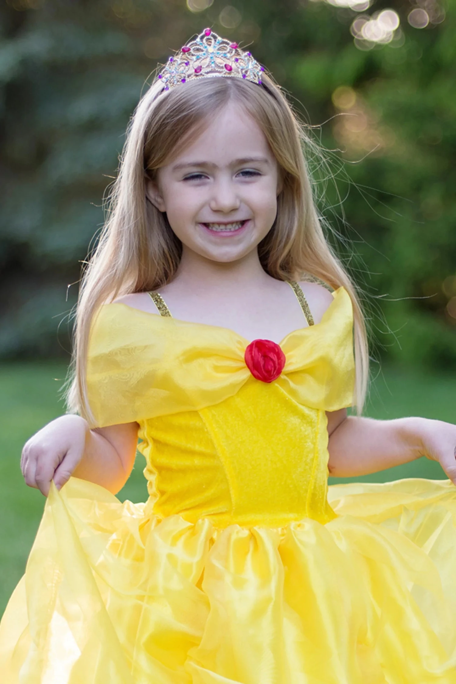 A tiara makes you feel special, adds that extra needed flare to regular school outfits. So why not go all the way! Our gold metal tiara is bedazzled with jewels and gems. Featuring faux rhinestone and gem detailing, this gold tiara completes any princess costume or just for everyday wear depending on your princess needs.