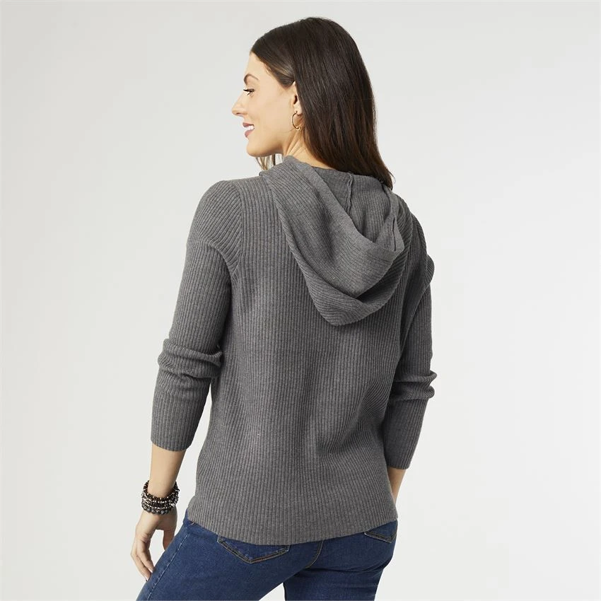 BRINLEY HOODED RIBBED SWEATER CHARCOAL GREY