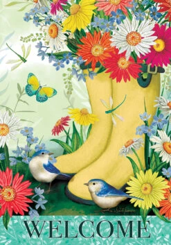 Welcome in the season with one of our Gorgeous Double-Sided Flags. We are proud to say they are printed right here in-house, in the USA! Each flag is printed using a fade-resistant ink, on luxurious velvety soft heavyweight fabric, creating a beautiful drape showcasing its stunning design.