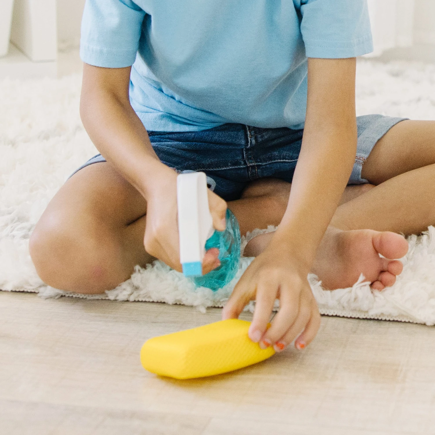 Turn clean-up time into playtime and have good, clean fun with realistic kid-sized cleaning accessories from Melissa & Doug! Make floors sparkle with the wooden long-handled broom, dustpan, and sweeper-mop with removable cleaning cloth. Polish surfaces with a fluffy hand duster, and wipe away grime with a sponge, spray bottle and reusable cloth towel roll attached to the wooden storage stand. There’s even a wooden-handled lint brush to keep clothes and furniture looking tip-top. Kids three and older will love keeping track of their chores on the reusable checklist as they help out around the house!