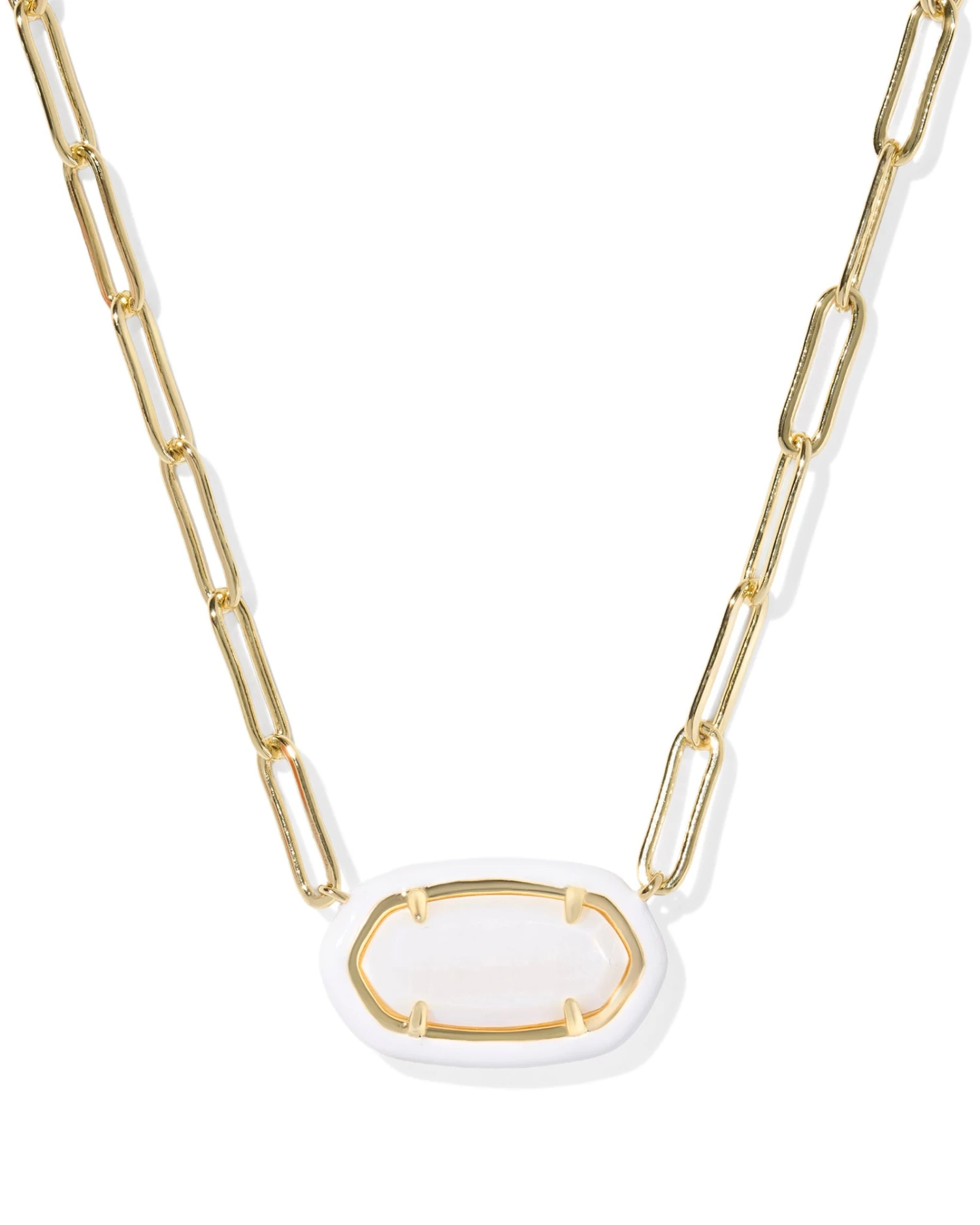 Elevate your style this fall with the Elisa Enamel Frame Paperclip Necklace from Kendra Scott. Its sleek, modern design pairs effortlessly with any outfit, adding a touch of sophistication and contemporary charm. Crafted for everyday wear, this necklace is the perfect accessory to enhance your seasonal wardrobe with subtle elegance.