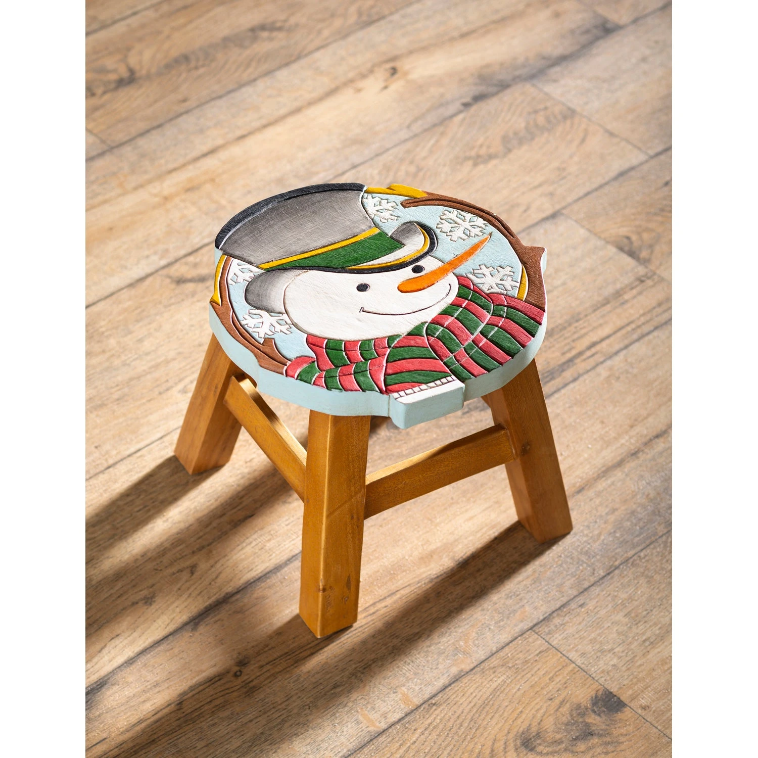 Hand-Carved Acacia Wood Snowman Footstool