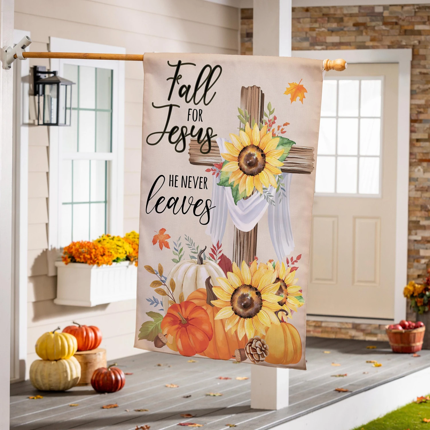 Celebrate enduring faith with the He Will Never Leave Suede Flag. Crafted from soft suede, this flag adds a warm, inviting touch to your fall décor while reminding you of unwavering support and presence. Pair it with matching pieces to create a cohesive, heartfelt display that inspires and uplifts throughout the season. Perfect for welcoming guests or enhancing your outdoor space with meaningful style.