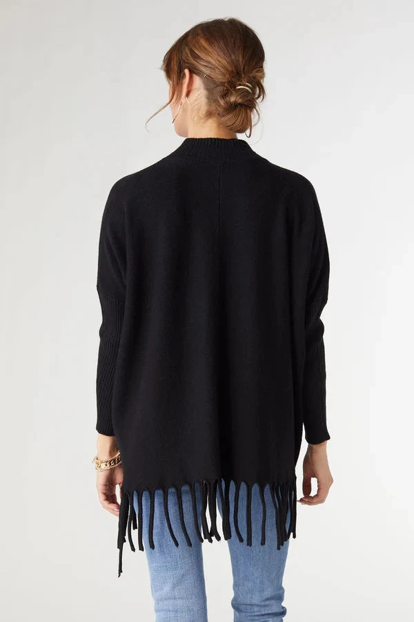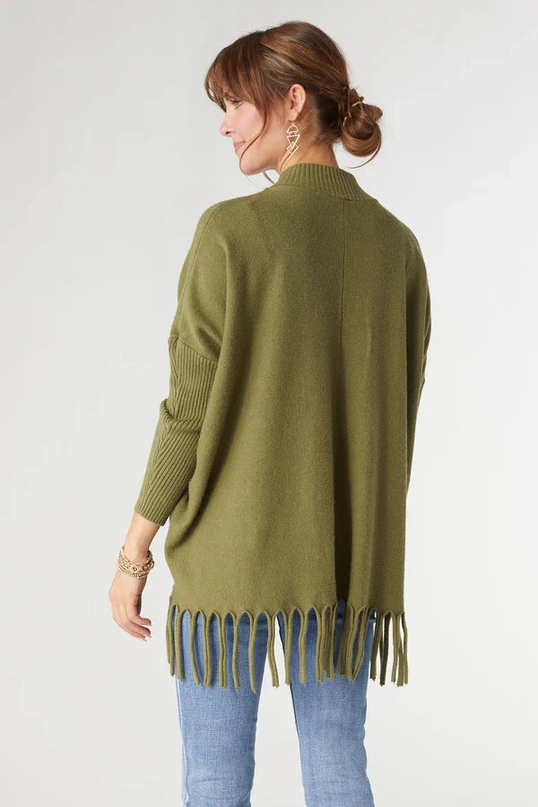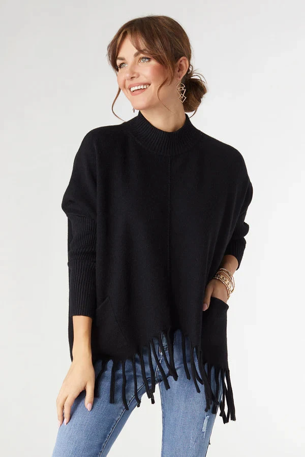 Heavenly-Luxe Flowy Mock Neck Fringe Sweater