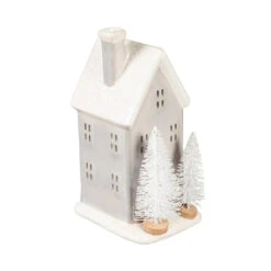 8″ LED Ceramic House With White Bottlebrush Trees Table Decor