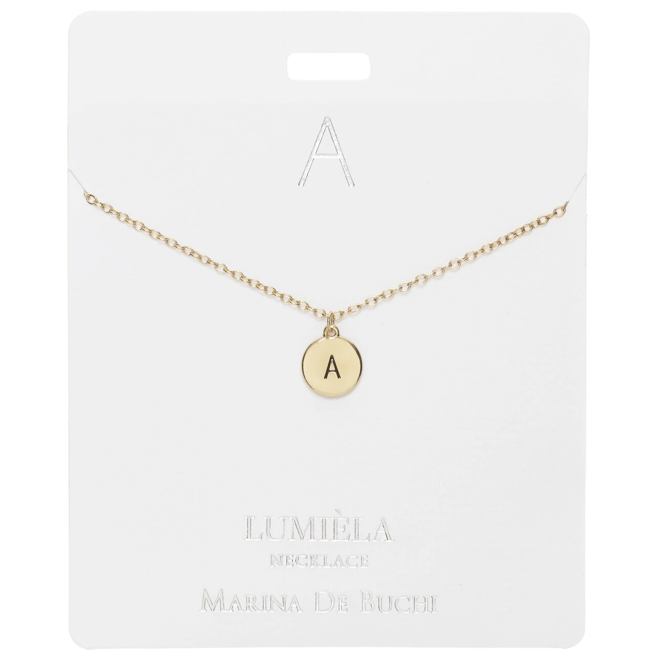 - Beautifully presented on a 10.5cm x 8.5cm card, stamped with your initial and the iconic Marina De Buchi logo in silver foil