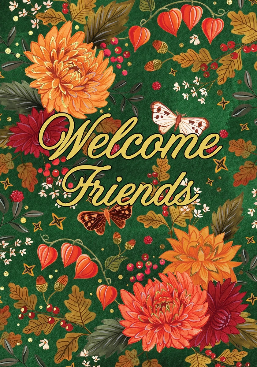 Welcome in the season with one of our Gorgeous Double-Sided Flags. We are proud to say they are printed right here in-house, in the USA! Each flag is printed using a fade-resistant ink, on luxurious velvety soft heavyweight fabric, creating a beautiful drape showcasing its stunning design. (Readable from both sides!)