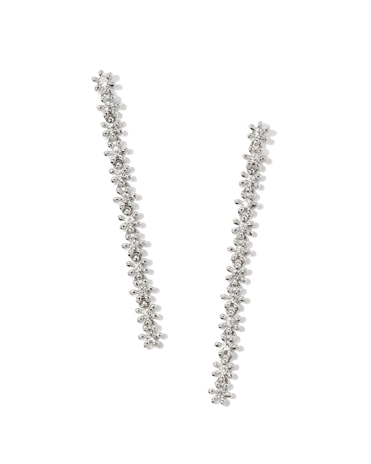 The NYDIA LINEAR EARRINGS WHITE CRYSTAL by KENDRA SCOTT are the perfect finishing touch to your summer look. The dazzling white crystals add a touch of luxury, while the linear design elongates the neckline for a stylish and elegant look. Elevate your outfit and make a statement with these stunning earrings!