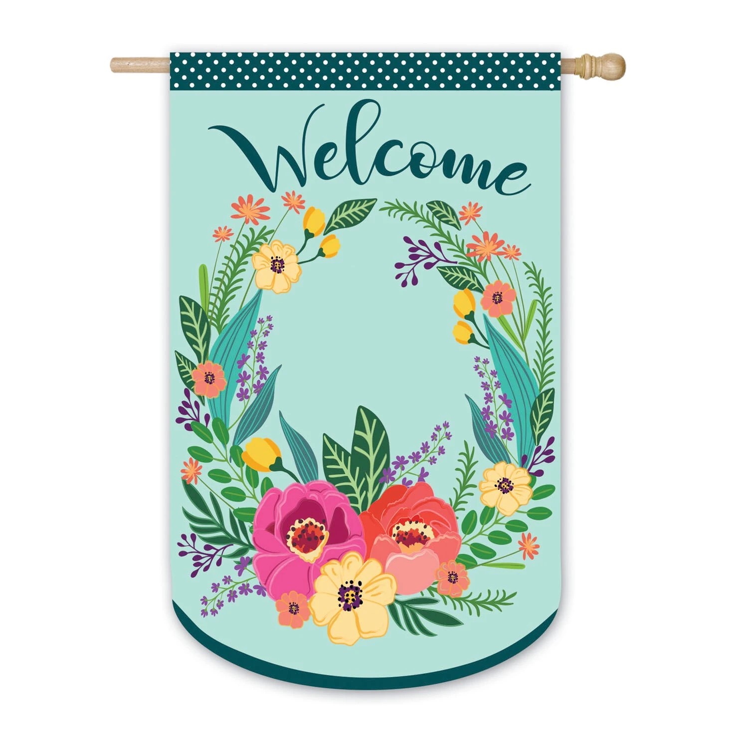 This welcoming floral burlap house flag makes a stunning statement in any home for the spring season. With a vibrant color palette, the lush wreath is perfect for any outdoor area that needs an extra dose of charming style. This Burlap Boutique flag is made of medium-weight, soft polyester burlap fabric that has the look and feel of real burlap. Artwork is heat transferred onto both sides of the textured fabric to create a natural, crafted look. The poly-burlap is a durable and weatherproof material that will not fade or fray after continued use. All flags also feature a sleeve at top for use with any standard flagpole or stand, sold separately.