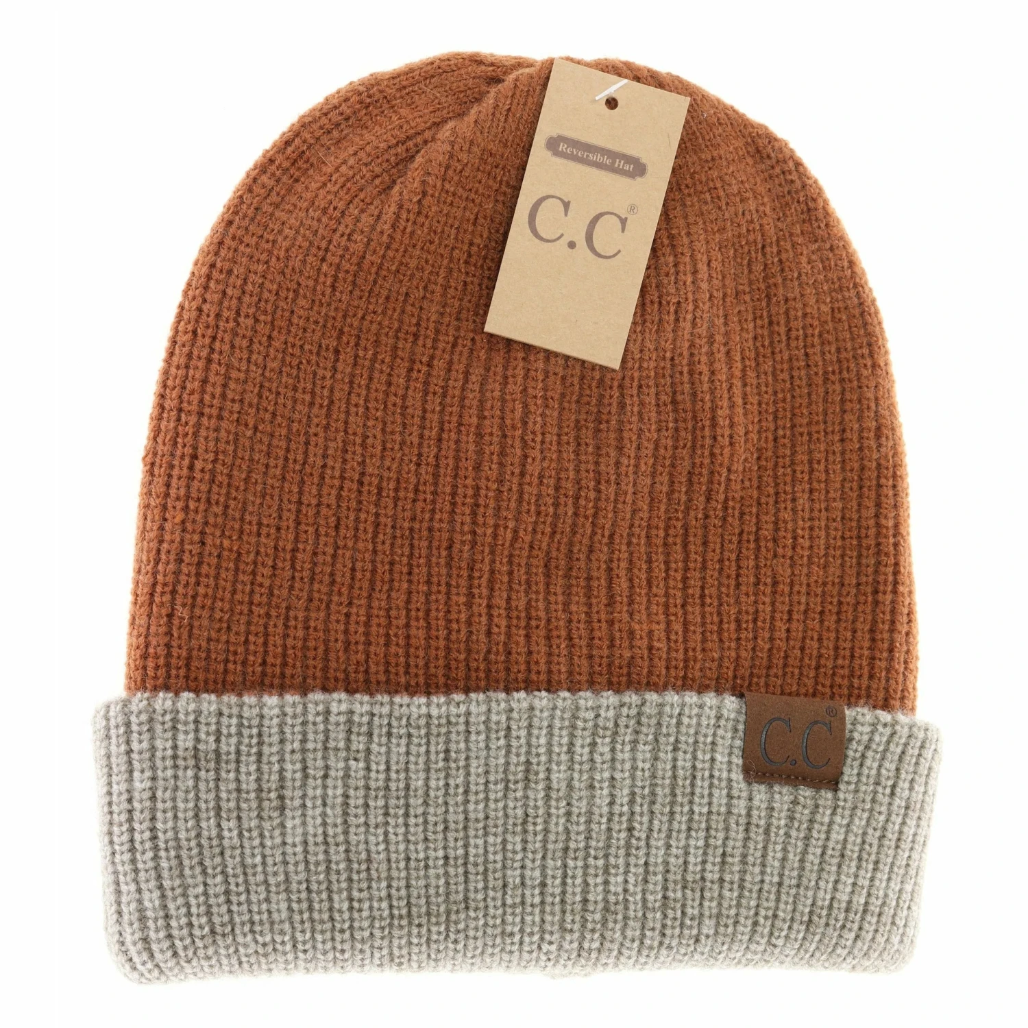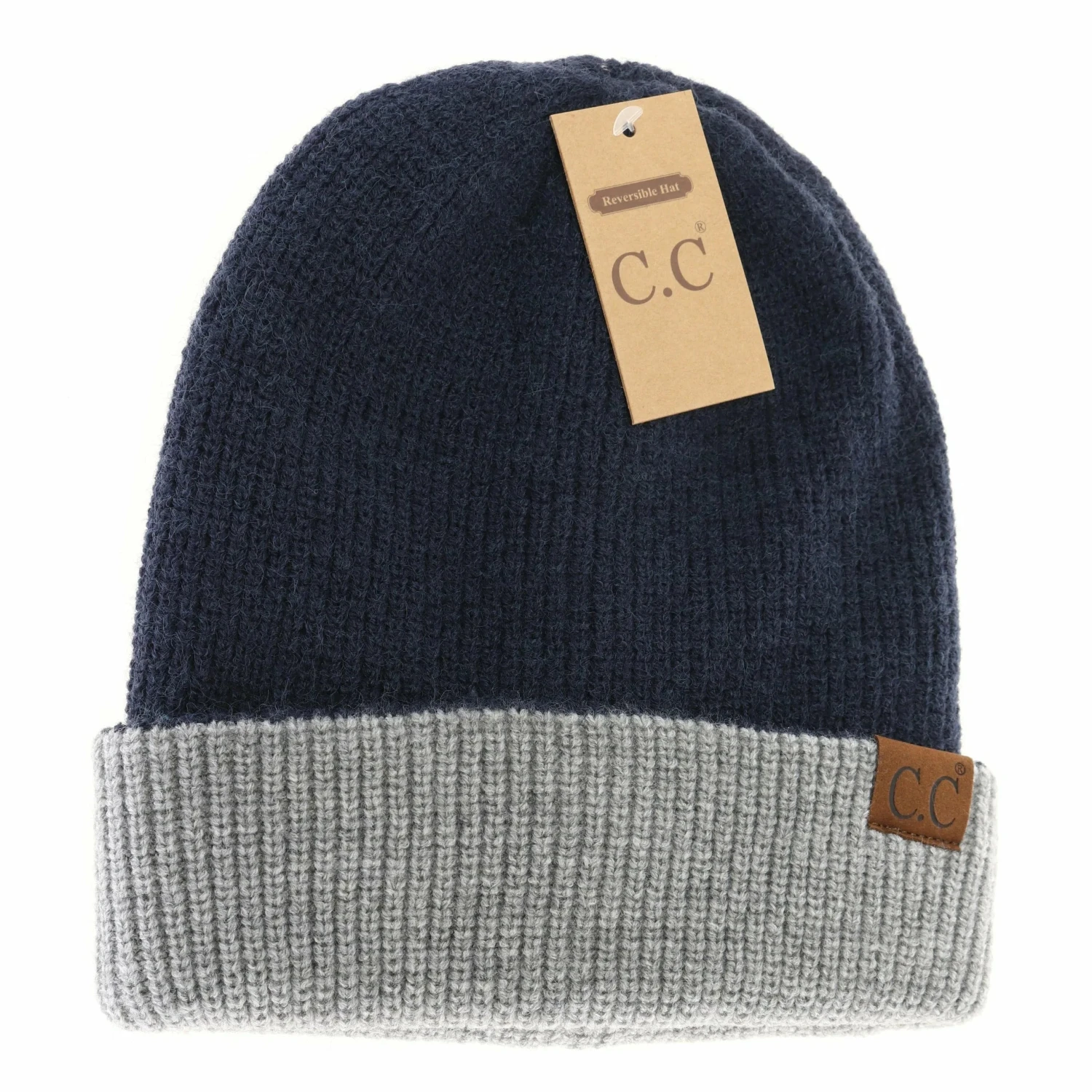 Dress your favorite men in our Unisex collection! This beanie offers so many looks! It is two-tone, reversible and can be worn with a cuff or without for a slouchy look!Â