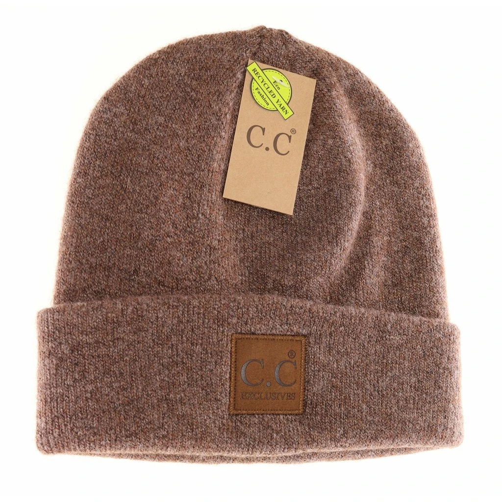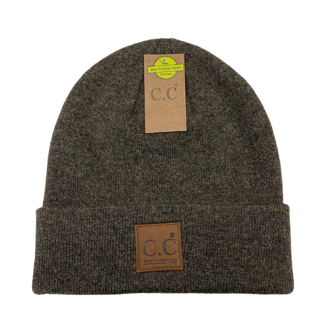 All NEW – we now offer a soft CC beanie that is great for men and women with eco friendly super soft yarn! This beanie has a soft marled knit, and we added a large leather logo patch on the front for a rugged and outdoor finish.