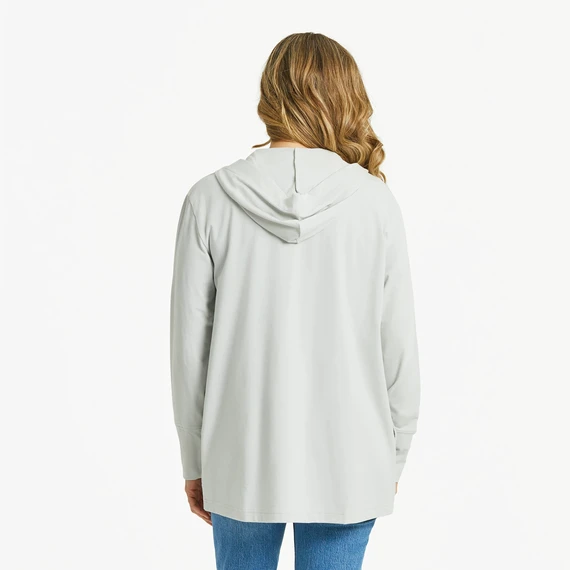 - Relaxed open-front non-closure hooded cardigan – roomy enough to wrap around you for extra coverage.