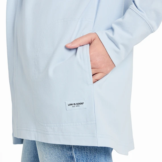 - Side seam pockets, self-fabric cuffs, and interior self back neck tape for a clean finish. Life is Good® branded twill patch.